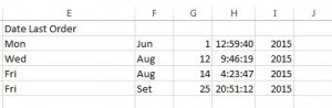 Looking at the data we see there are five fields. I’m assuming you have the data loaded into a spreadsheet and are ready to proceed. In order to do so we need to give ourselves a little elbow room to work. To the right of the date column you want to convert, insert five columns. Don’t worry, Excel should warn you before overwriting data that may be in the way.