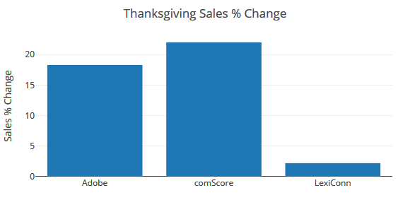 If you’ve been following our holiday posts for the last few years, you know that one thing we do differently than most holiday stats reports is that we compare the same exact stores for both years to get true comparison results. Citing an increase in sales when your data pool has changed will obviously include changes due to the different stores or just by having a larger/smaller data pool from year to year.